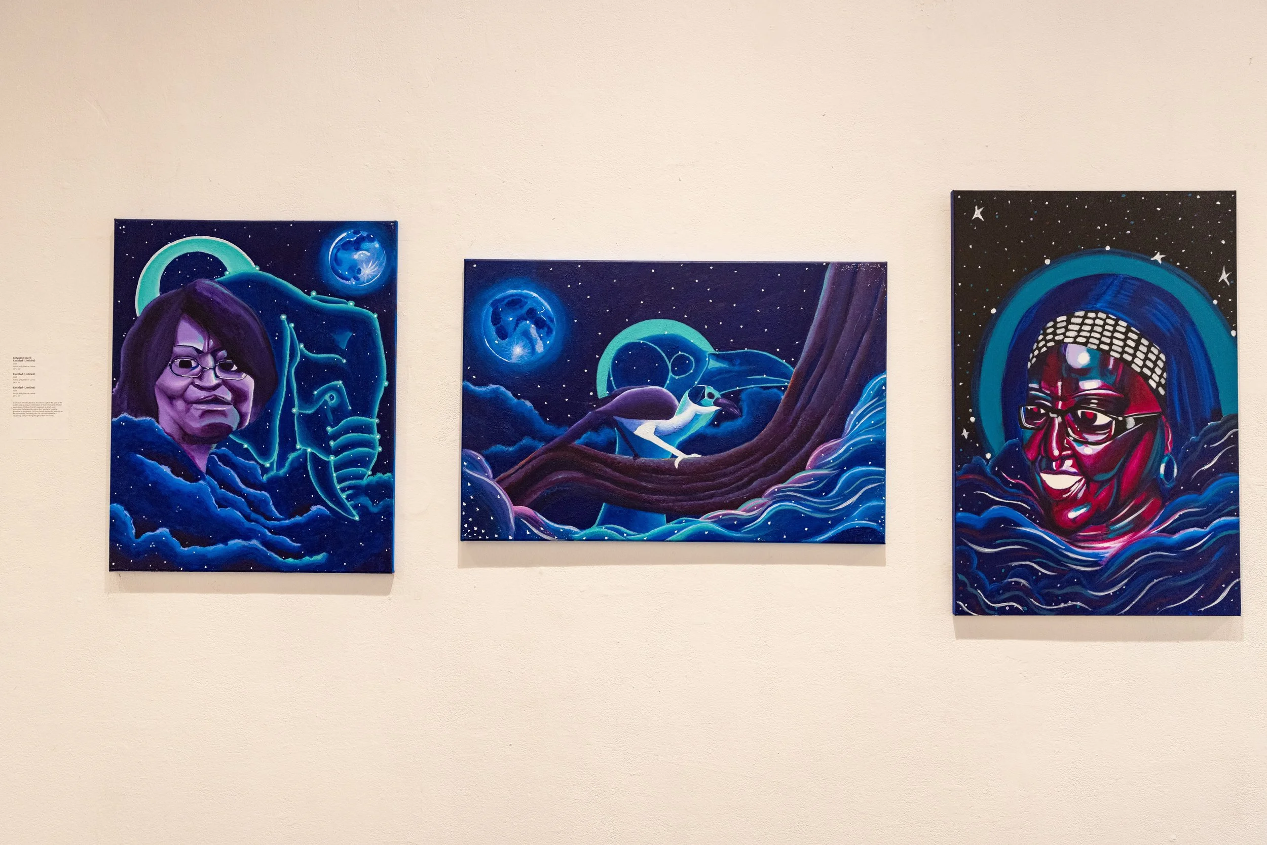 Curated by DiQuan Forcell and John Alleyne, the exhibition features a range of works from six artists: A’mya Mcknight, Brikarri Williams, DiQuan Forcell, JaTaiRee Hudson Jr., JESSC.X, and John Alleyne.